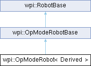 The OpModeRobot class is intended to be subclassed by a user creating a robot program. Users must provide their derived class as a template parameter to this class.
