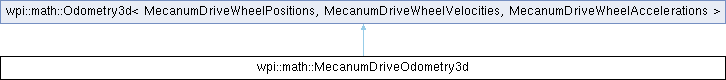 | Public Member Functions inherited from wpi::math::Odometry3d< MecanumDriveWheelPositions, MecanumDriveWheelVelocities, MecanumDriveWheelAccelerations > | |