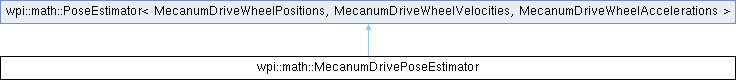 | Public Member Functions inherited from wpi::math::PoseEstimator< MecanumDriveWheelPositions, MecanumDriveWheelVelocities, MecanumDriveWheelAccelerations > | |