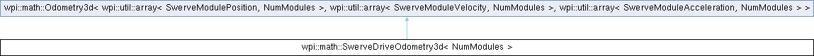 | Public Member Functions inherited from wpi::math::Odometry3d< wpi::util::array< SwerveModulePosition, NumModules >, wpi::util::array< SwerveModuleVelocity, NumModules >, wpi::util::array< SwerveModuleAcceleration, NumModules > > | |