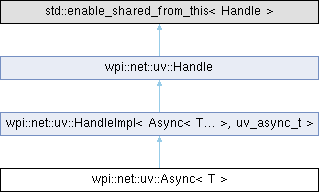 | Public Member Functions inherited from wpi::net::uv::HandleImpl< Async< T... >, uv_async_t > | |