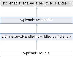 | Public Member Functions inherited from wpi::net::uv::HandleImpl< Idle, uv_idle_t > | |