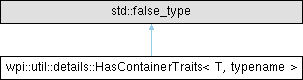 Inheritance diagram for wpi::util::details::HasContainerTraits< T, typename >: